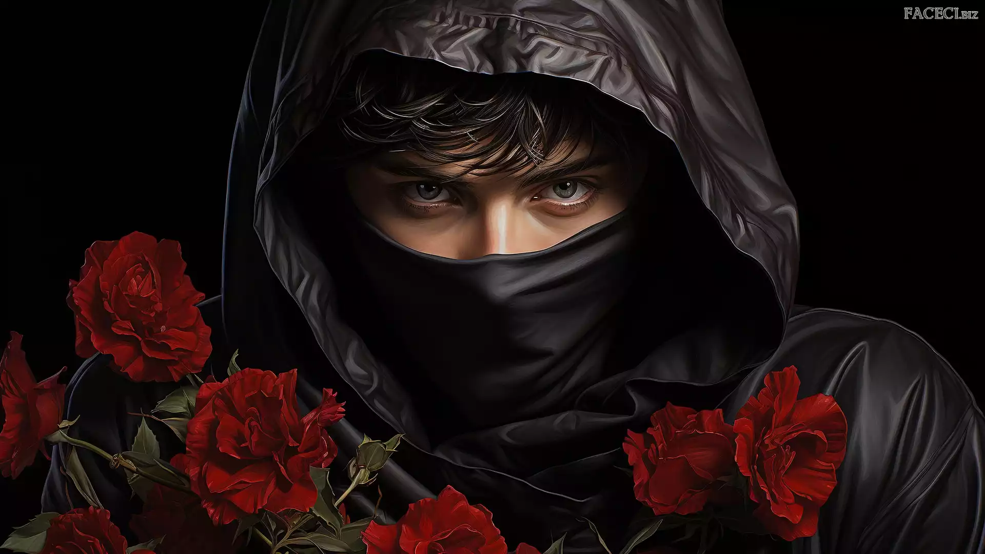 Kwiaty, Maska, Grafika, Mężczyzna, Kaptur - faceci.biz